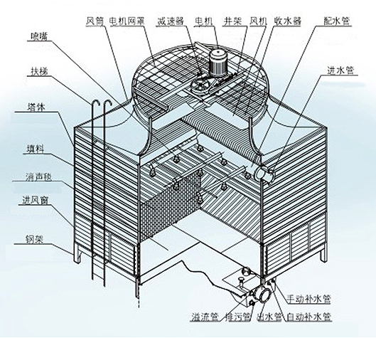 - 可方便地从冷却塔所有四个侧面进入,可接触到集水盆的任何位置。